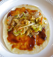 Mu shu can be done in a pretty easy way if you have an Asian shop nearby where you can buy the mandarin pancakes (I couldn't find them in a regular grocery store). I decided to go the homemade route and make these pancakes, which are more like an Asian tortilla, from scratch. They're not difficult to make, just time consuming. But ultimately the effort was worth it since this mu shu tasted exactly as I remembered.